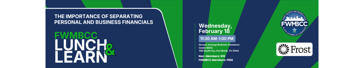 Join us for an access to capital lunch and learn with Frost Bank. In this small business focused session, a Frost Banker will discuss reasons why it’s important to keep your personal and business financials separate. They will also address what banks are looking for in small business financials.