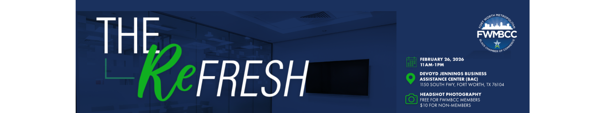 Join the Fort Worth Metropolitan Black Chamber of Commerce of a Head Shot pop-up. Members and non-members are welcome to stop by and get a polished, professional headshot perfect for LinkedIn, resumes, and branding. Refresh your look, boost your confidence, and invest in your personal brand- all in one quick visit!